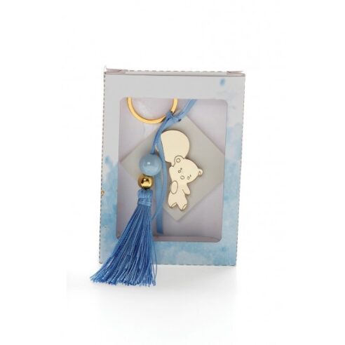 Μπομπονιέρα με ξύλινη πλάτη και μπρελόκ αρκουδάκι