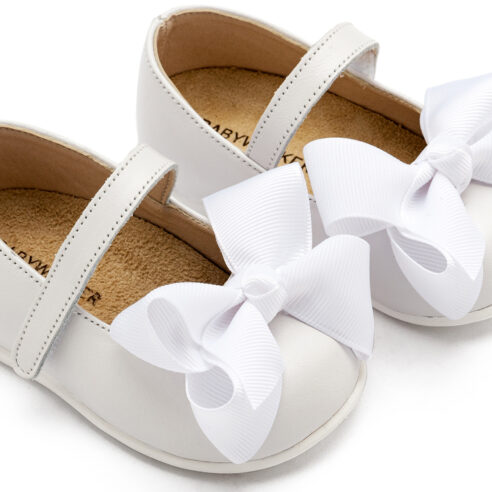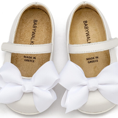 Γοβάκι Μονή Μπαρέτα με Υφασμάτινο Χειροποίητο Φιογκάκι MI1652 Λευκό