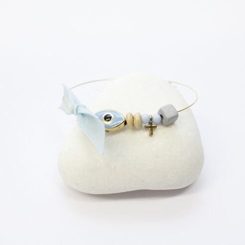 Μαρτυρικά Επίχρυση χειροπέδα με φίμο ματάκι και επίχρυσο σταυρό 23195