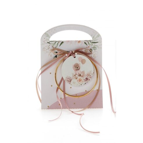 Μπομπονιέρα σε τσαντάκι και χρυσό στεφάνι Αρκουδάκι