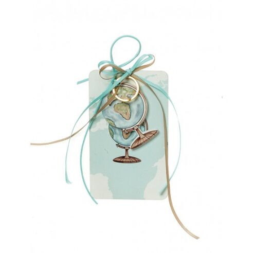 Μπομπονιέρα με ξύλινη πλάτη και μπρελόκ υδρόγειος