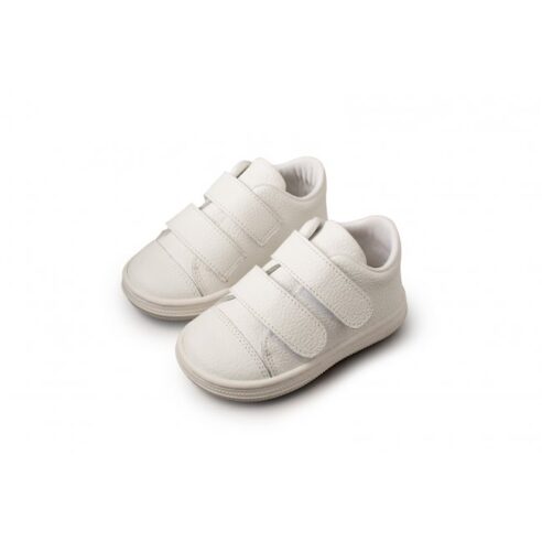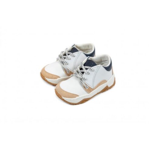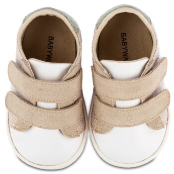 Τρίχρωμο σνίκερ διπλή μπαρέτα χρατς απο δέρμα και ύφασμα σε μπεζ λευκό μέντα χρώμα (στο πίσω μέρος του παπουτσιού υπάρχει μέντα χρώμα δέρμα). Παπουτσάκια για τα πρώτα βήματα.
