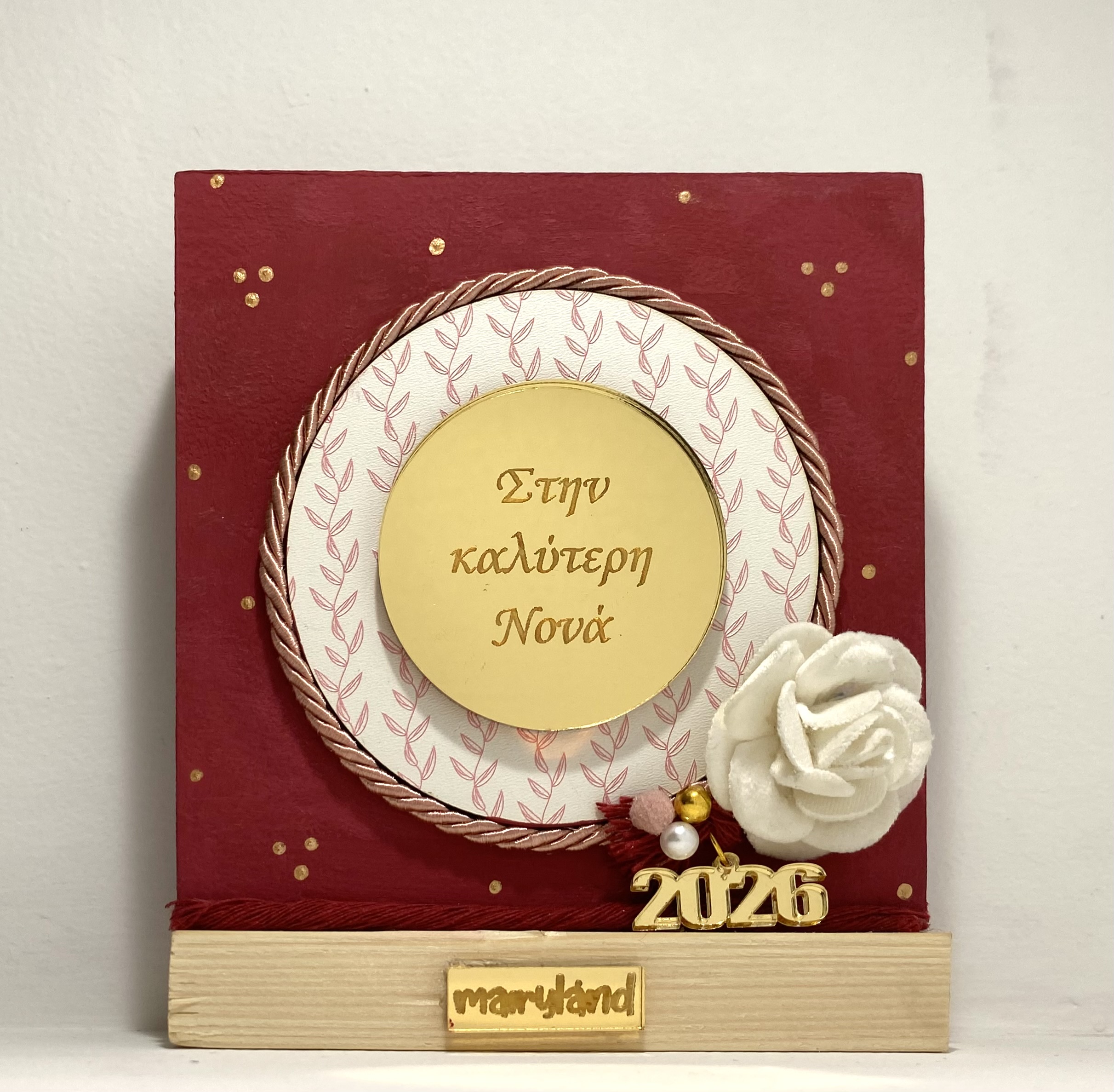 Κωδικός προϊόντος: MAIR2025-30 Κατηγορίες: Γούρια, Διακοσμητικά, Χριστούγεννα, Χριστουγεννιάτικο Προσωποποιημένο Επιτραπέζιο Σταντ Ετικέτες: festive decor, holiday keepsake, home decor, mairyland, plexiglass, premium gift, xmas 2026, δώρο για νονά, ελληνική δημιουργία, ξύλινο σταντ, προσωποποιημένο δώρο, Χειροποίητο, χριστουγεννιάτικο δώρο