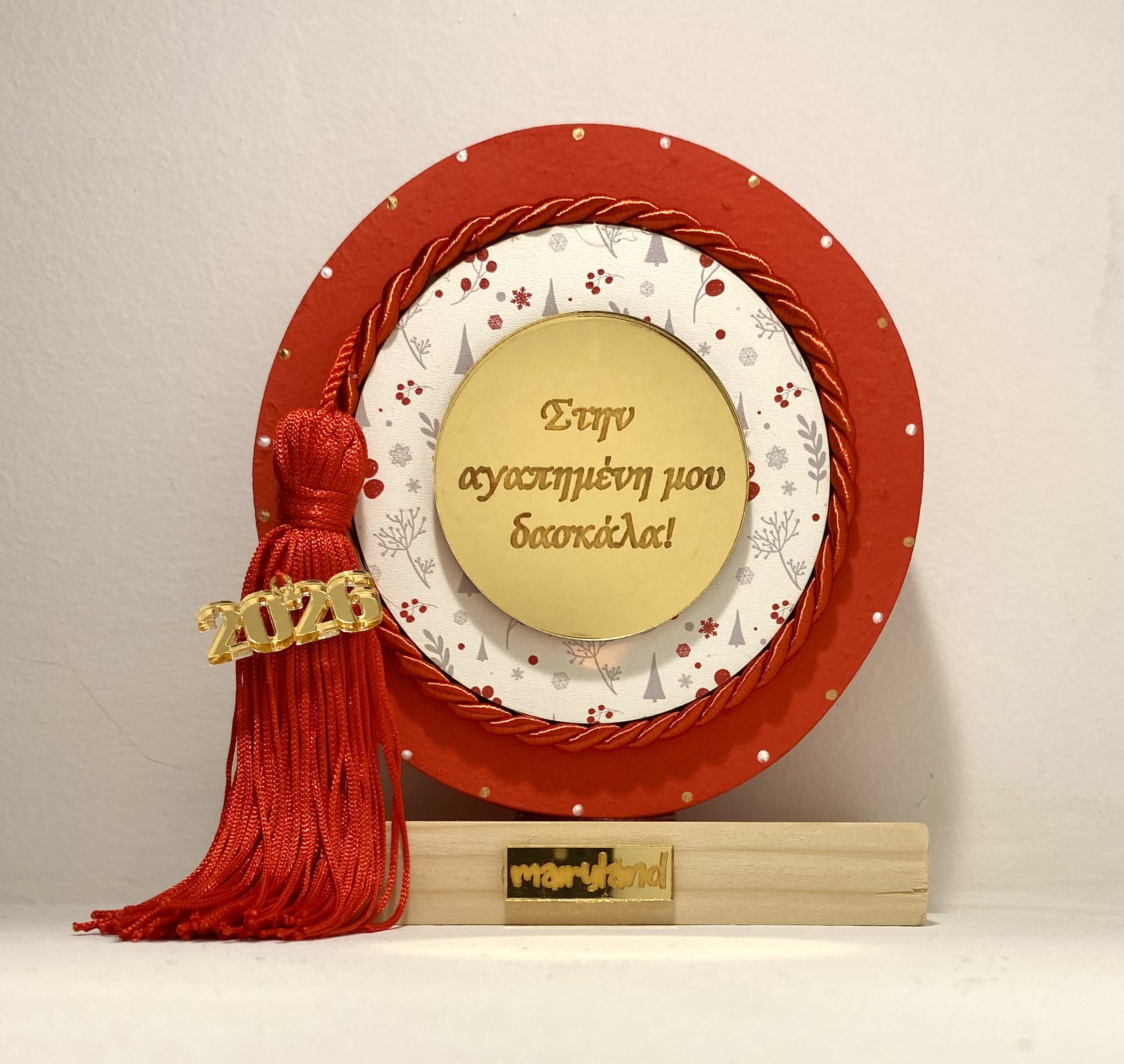 Χριστουγεννιάτικο Προσωποποιημένο Στρογγυλό Επιτραπέζιο Σταντ “Στην αγαπημένη μου δασκάλα!”