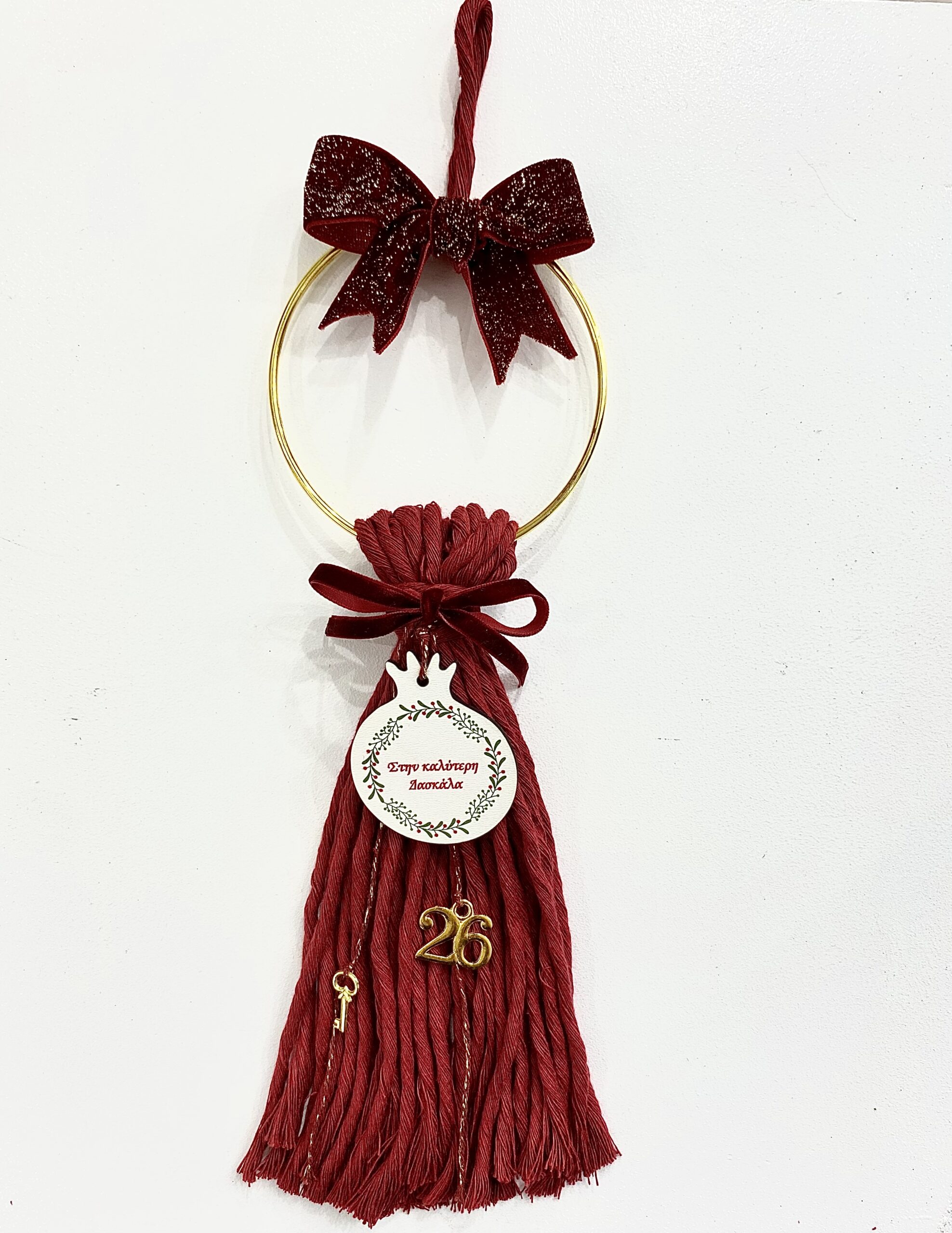 Το χειροποίητο γούρι “Στεφάνι 2026” από το Mairyland συνδυάζει το βαθύ κόκκινο χρώμα της παράδοσης με χρυσές λεπτομέρειες που προσδίδουν classy, premium χαρακτήρα.