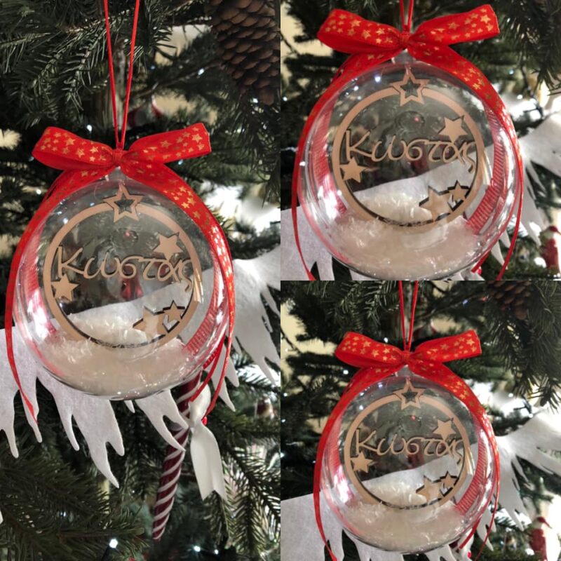 Χριστουγεννιάτικη χειροποίητη μπάλα με όνομα ή ευχή της επιλογή σας