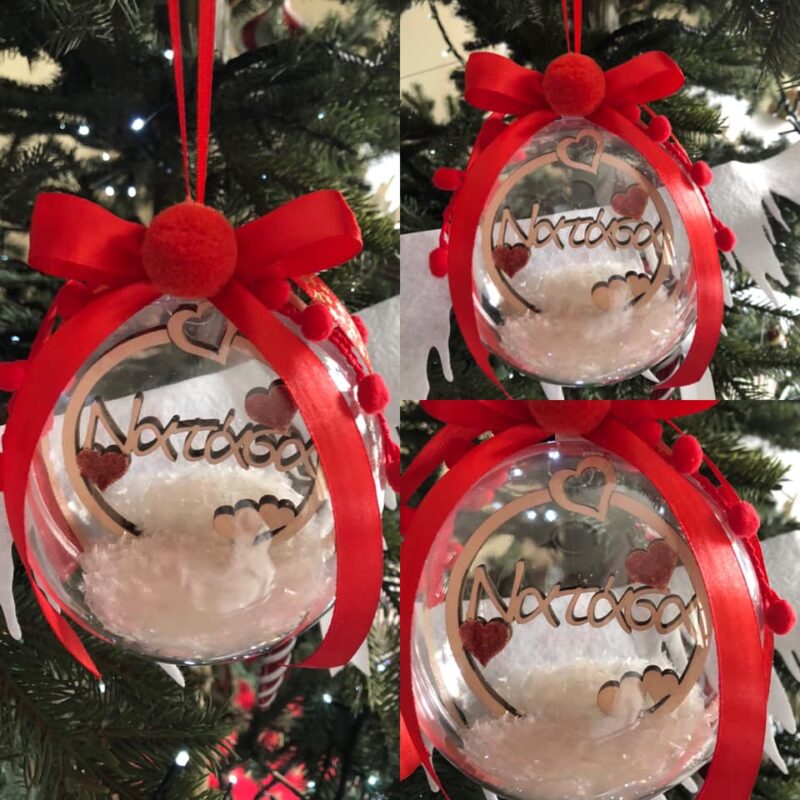 Χριστουγεννιάτικη χειροποίητη μπάλα με όνομα ή ευχή της επιλογή σας