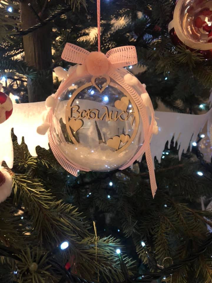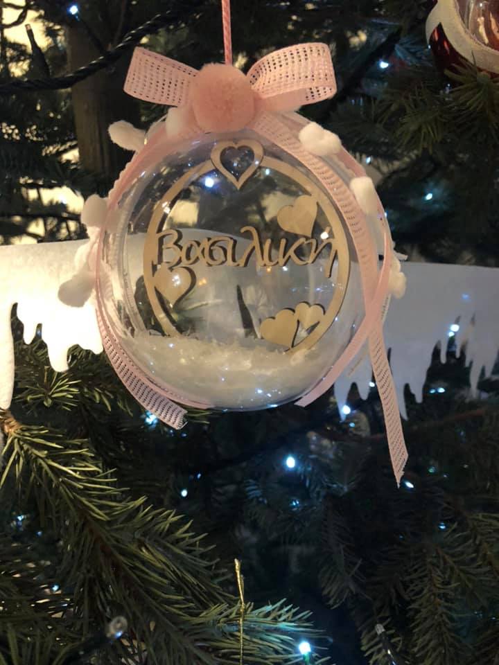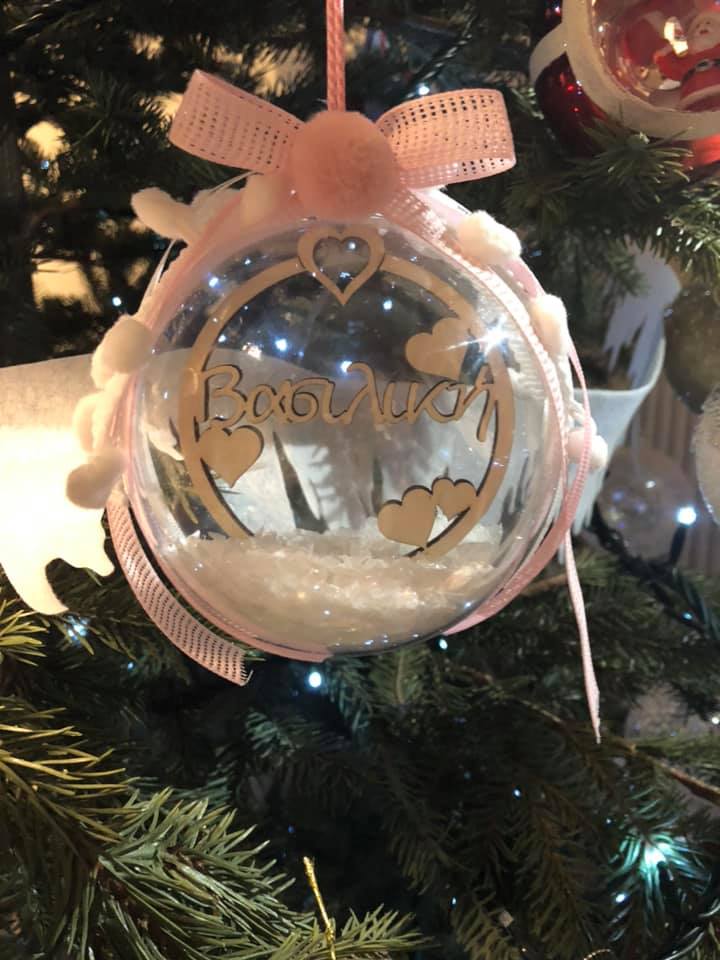Χριστουγεννιάτικη χειροποίητη μπάλα με όνομα ή ευχή της επιλογή σας