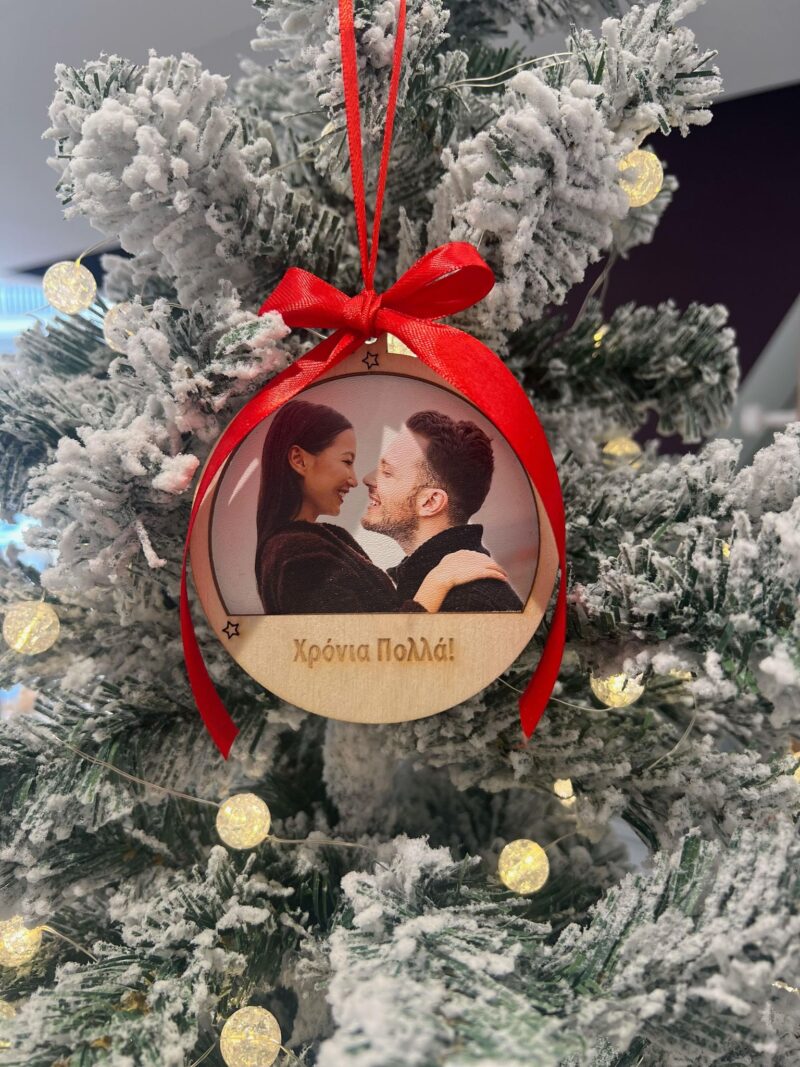 Χριστουγεννιάτικο στολίδι για ζευγάρια με φωτογραφία και ευχή