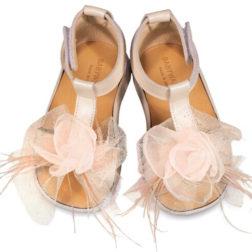 Πέδιλο με Χειροποίητο Διακοσμητικό με Chiffon Λουλούδια BW4860 Εκρού Ροζ