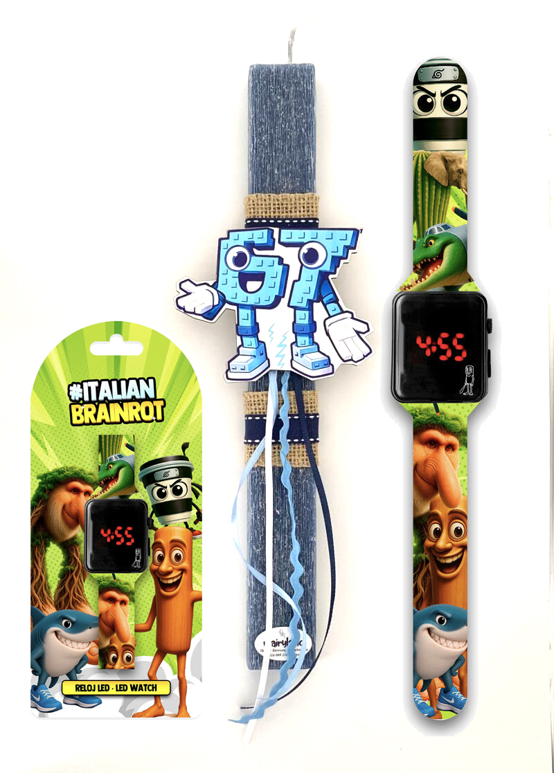 - Παιδικό Ρολόι LED Χειρός Italian Brainrot: Το τέλειο δώρο για τους μικρούς λάτρεις των Italian Brainrot! Διαθέτει μοντέρνο σχεδιασμό, φωτιζόμενη LED οθόνη. Εκτός από διασκεδαστικό, είναι πρακτικό για να μαθαίνουν την ώρα με ευκολία.