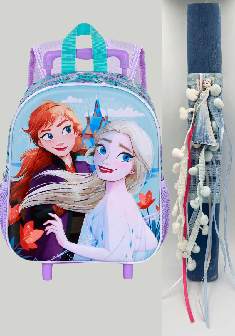 Αρωματική Λαμπάδα Frozen για το αγαπημένο σου βαφτιστήρι σετ με Τσάντα Τρόλεϊ Νηπιαγωγείου 3D Frozen Spring