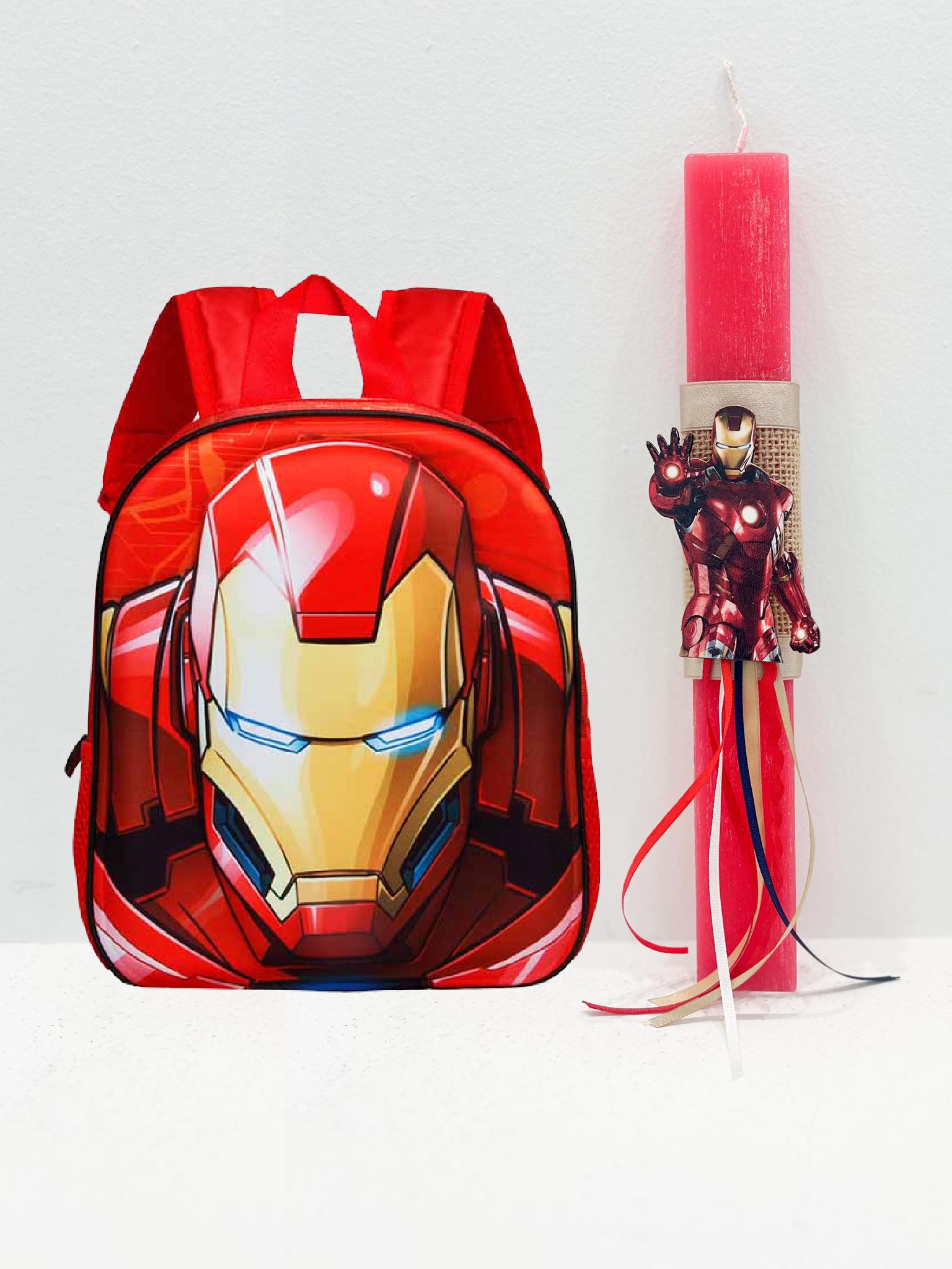 Αρωματική Λαμπάδα Iron Man για το αγαπημένο σου βαφτιστήρι σετ με τσάντα νηπιαγωγείου  Iron Man