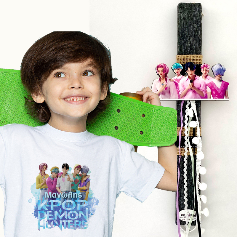 Μοναδικό παιδικό μπλουζάκι K-POP Demon Hunter για κορίτσι, με εκτύπωση υψηλής ποιότητας και δυνατότητα προσθήκης ονόματος. Ένα ξεχωριστό και χαρούμενο T-shirt που θα λατρέψουν οι μικροί φίλοι των SAJA BOYS