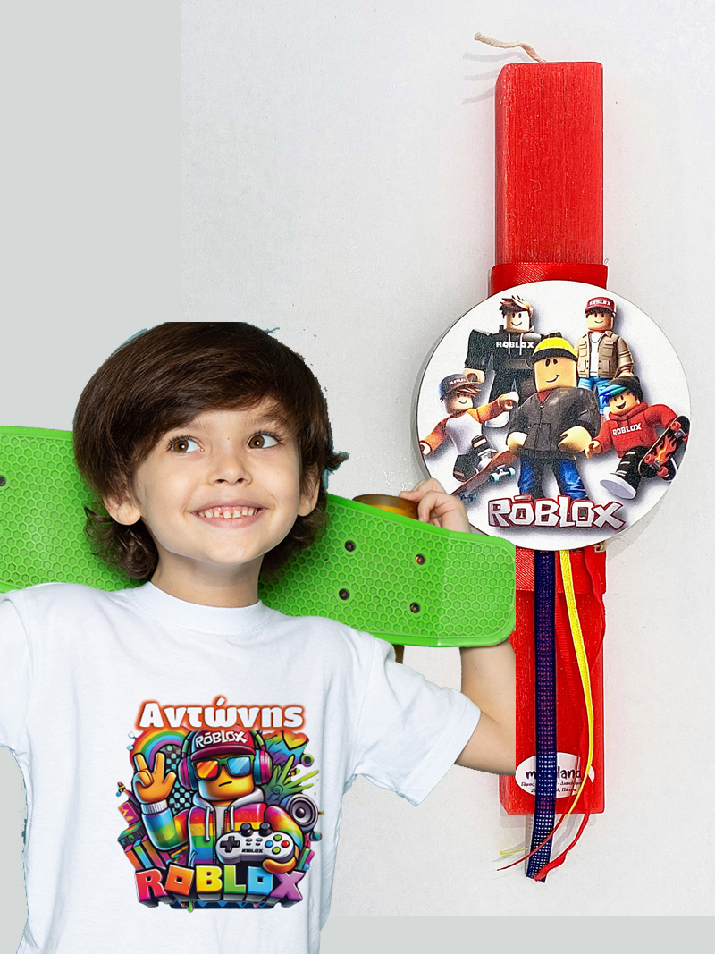Λαμπάδα Roblox με μπλουζάκι με όνομα Roblox