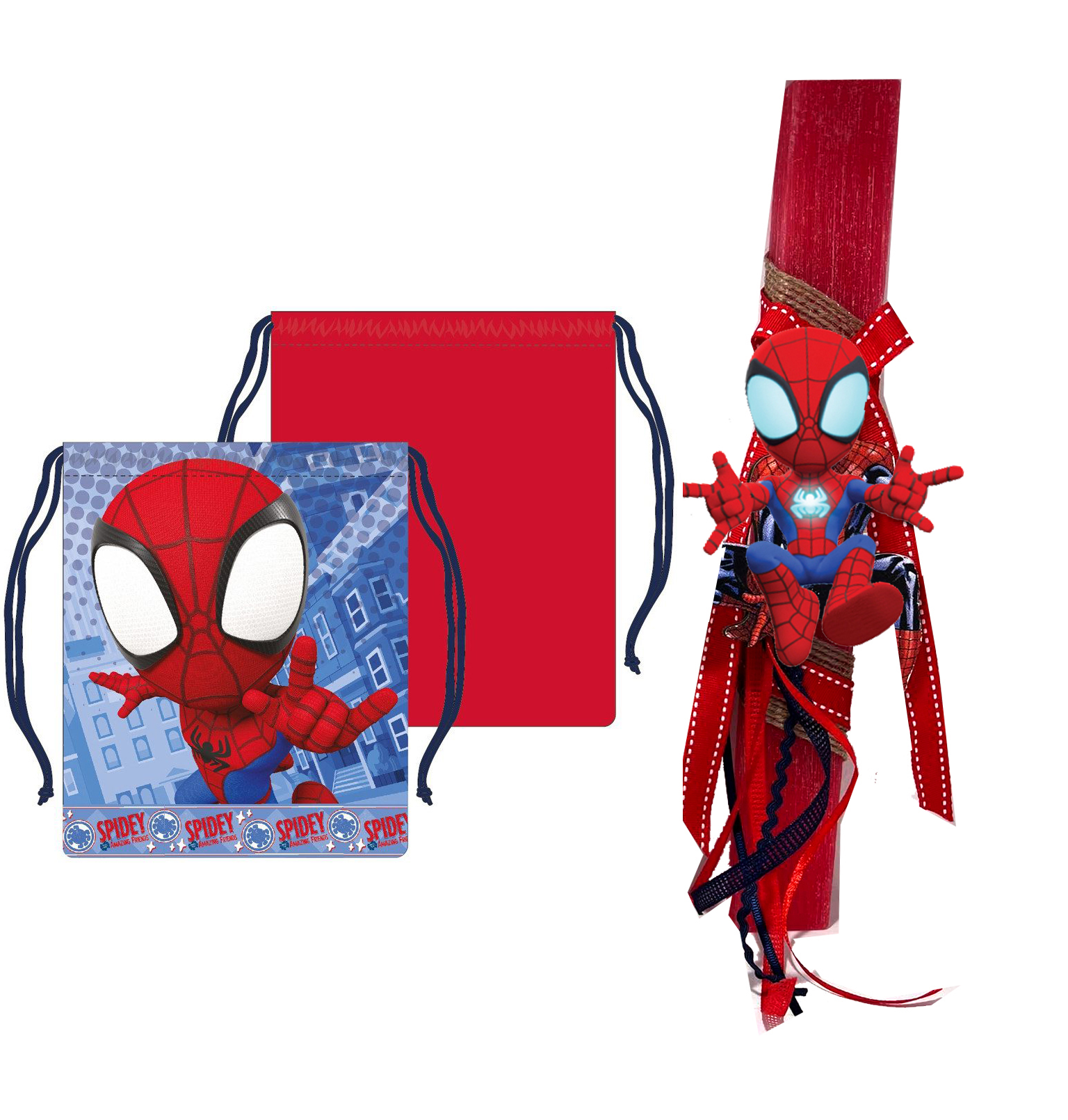 Αρωματική Πασχαλινή Λαμπάδα Spidey με Spidey σακίδιο γυμναστικής με κορδόνια 26,5 cm