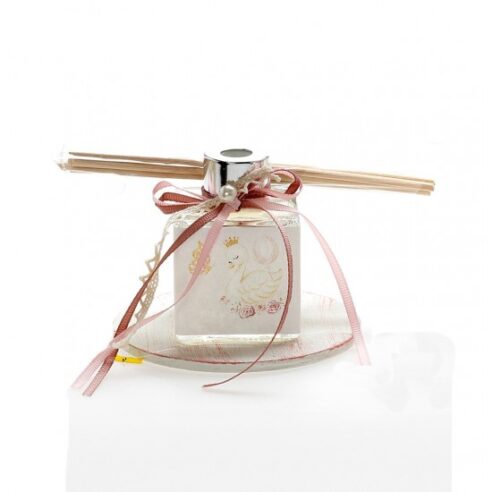 Μπομπονιέρα με γύψινη αρωματική βάση και πλεξιγκλάς διακοσμητικό Κύκνος.
