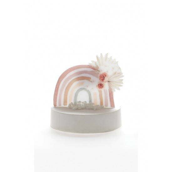 Μπομπονιέρα με γύψινη αρωματική βάση και πλέξιγλάς διακοσμητικό Ουράνιο τόξο.