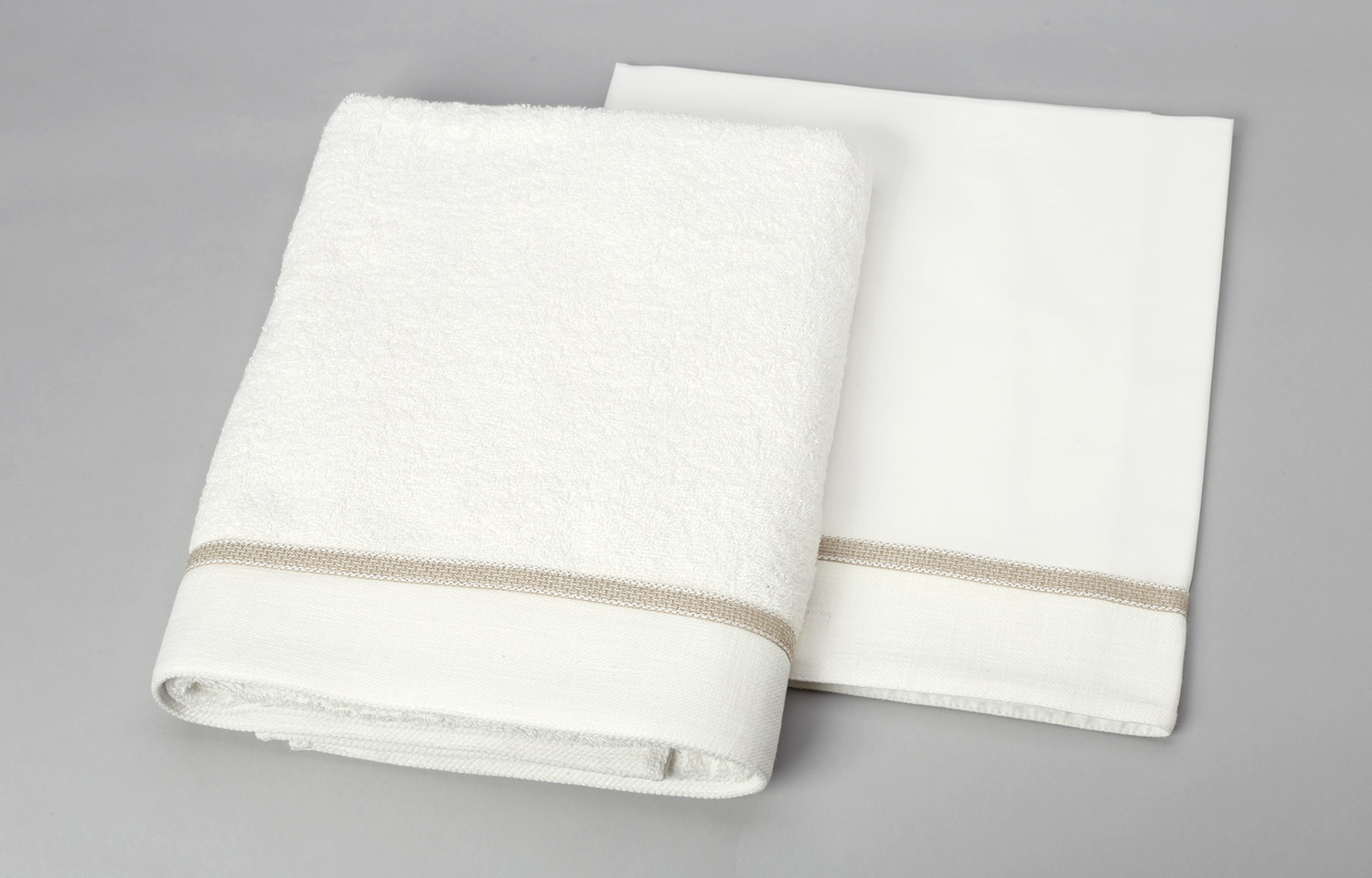 Εκρού λαδόπανο με μεγάλη φάσα εκρού και μικρή μπεζ κορδέλα.