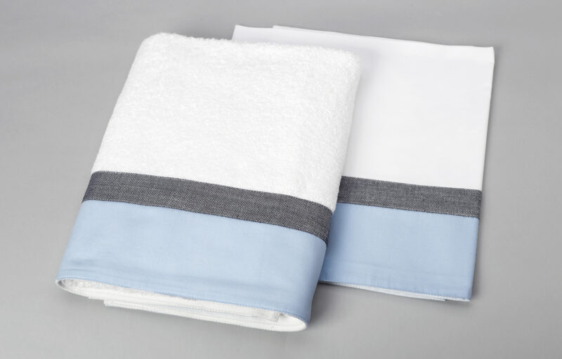 Άσπρο λαδόπανο με μεγάλη φάσα σιέλ και μικρή γκρι.
