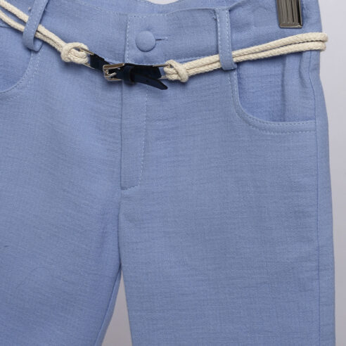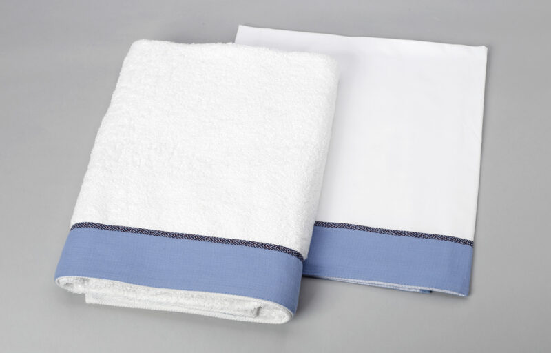 Άσπρο λαδόπανο με μεγάλη φάσα σιέλ και μικρή μπλε κορδέλα.
