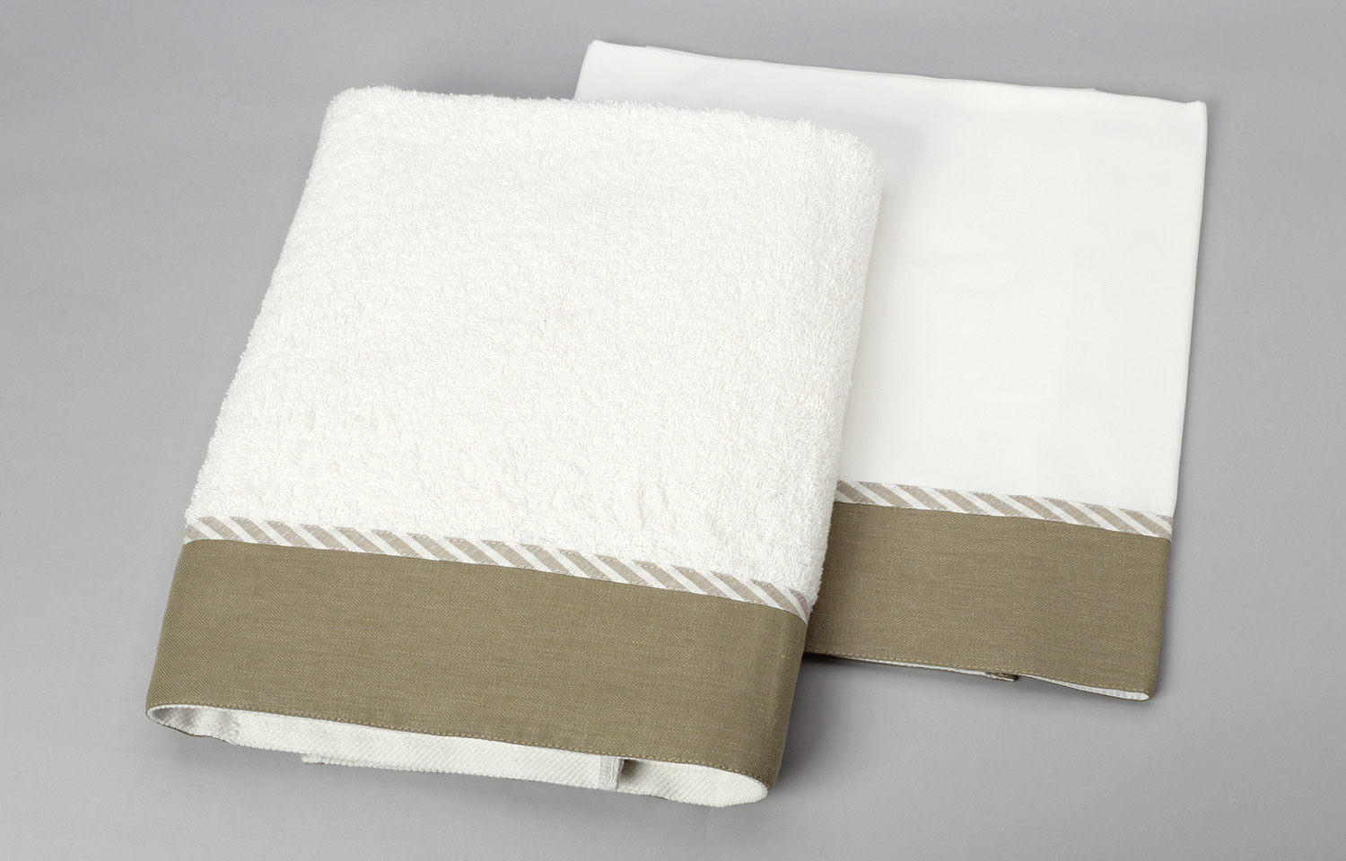 Εκρού λαδόπανο με μεγάλη φάσα μπεζ και μικρή μπεζ ριγέ κορδέλα..