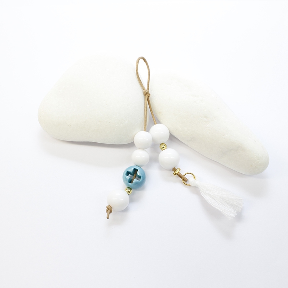 Μπεγλέρι δέρμα με σκαλιστή χάντρα σταυρό και φουντάκι