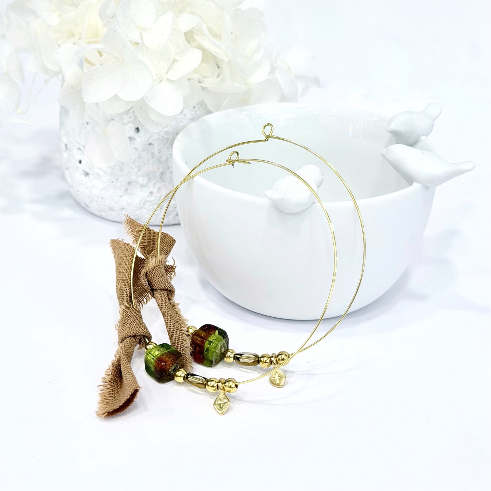 Βραχιόλι ατσάλινο σύρμα με γυαλωμένη χάντρα και σταυρό 24Κ