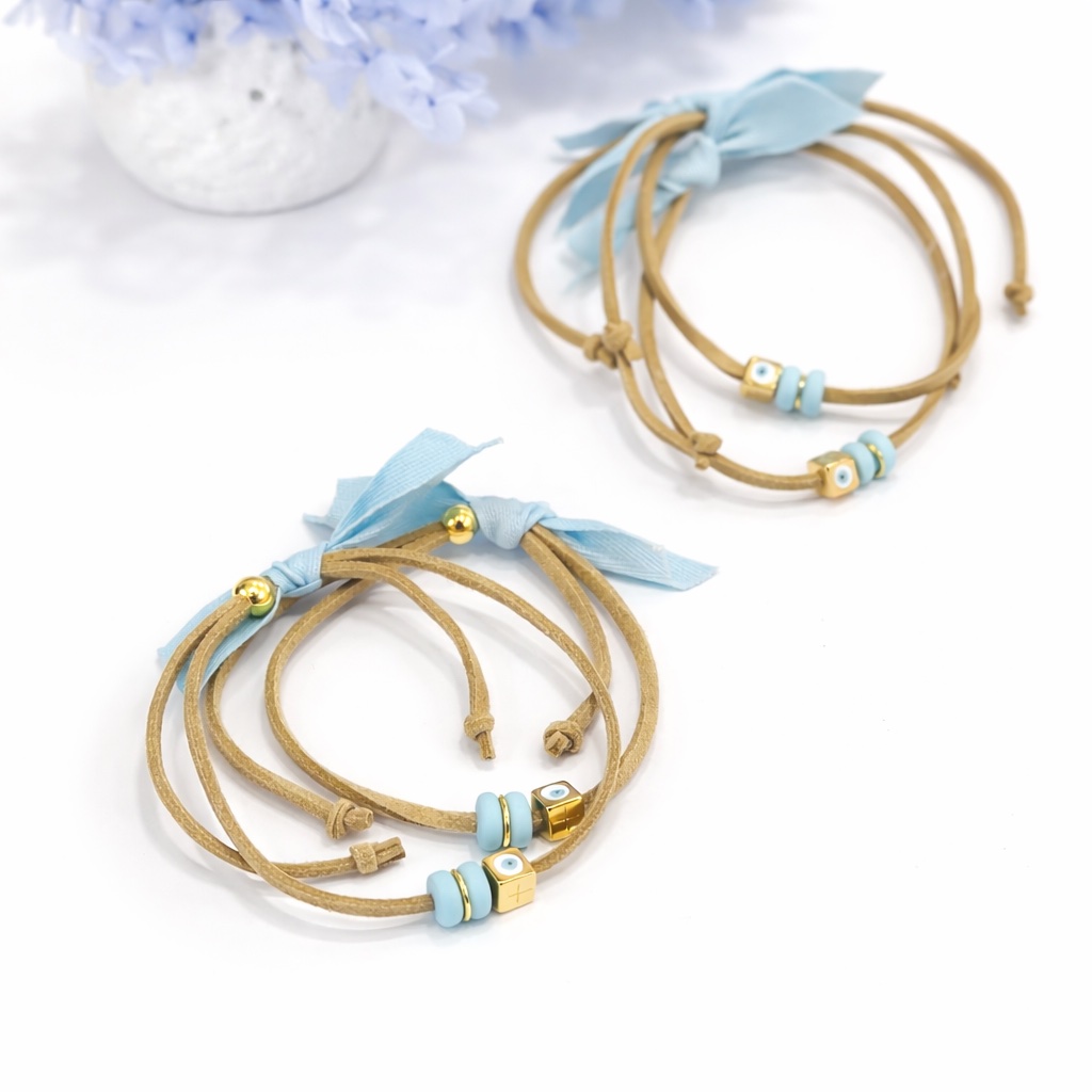 Βραχιόλι σουέτ αυξομείωσης με κύβο σταυρό 24Κ