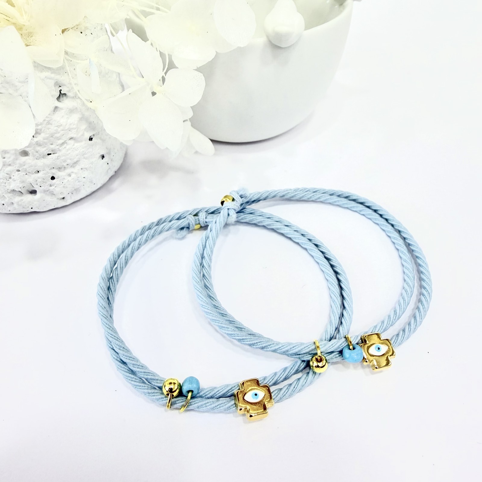 Βραχιόλι με ελαστικό κορδόνι και σταυρό 24Κ