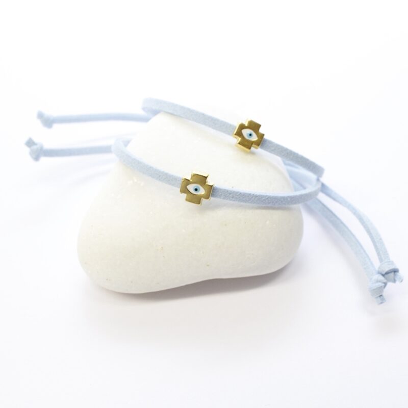 Βραχιόλι σουέτ με επίχρυσο σμάλτο σταυρό 24κ
