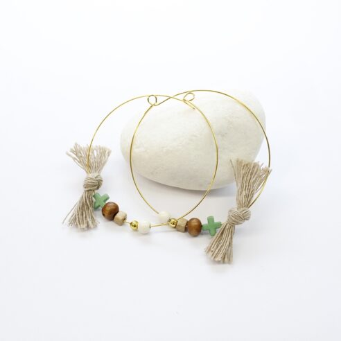 Βραχιόλι σουέτ με κεραμεική, ξύλινη χάντρα και επίχρυσο σταυρό