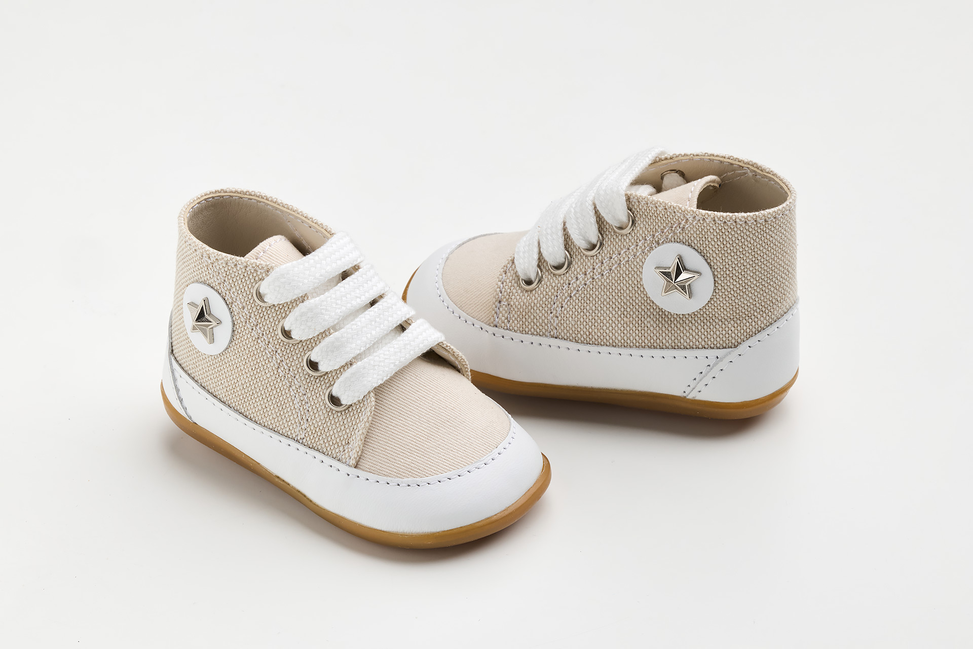 μποτάκι πρώτα βήματα σε λευκό δέρμα και εκρού ύφασμα