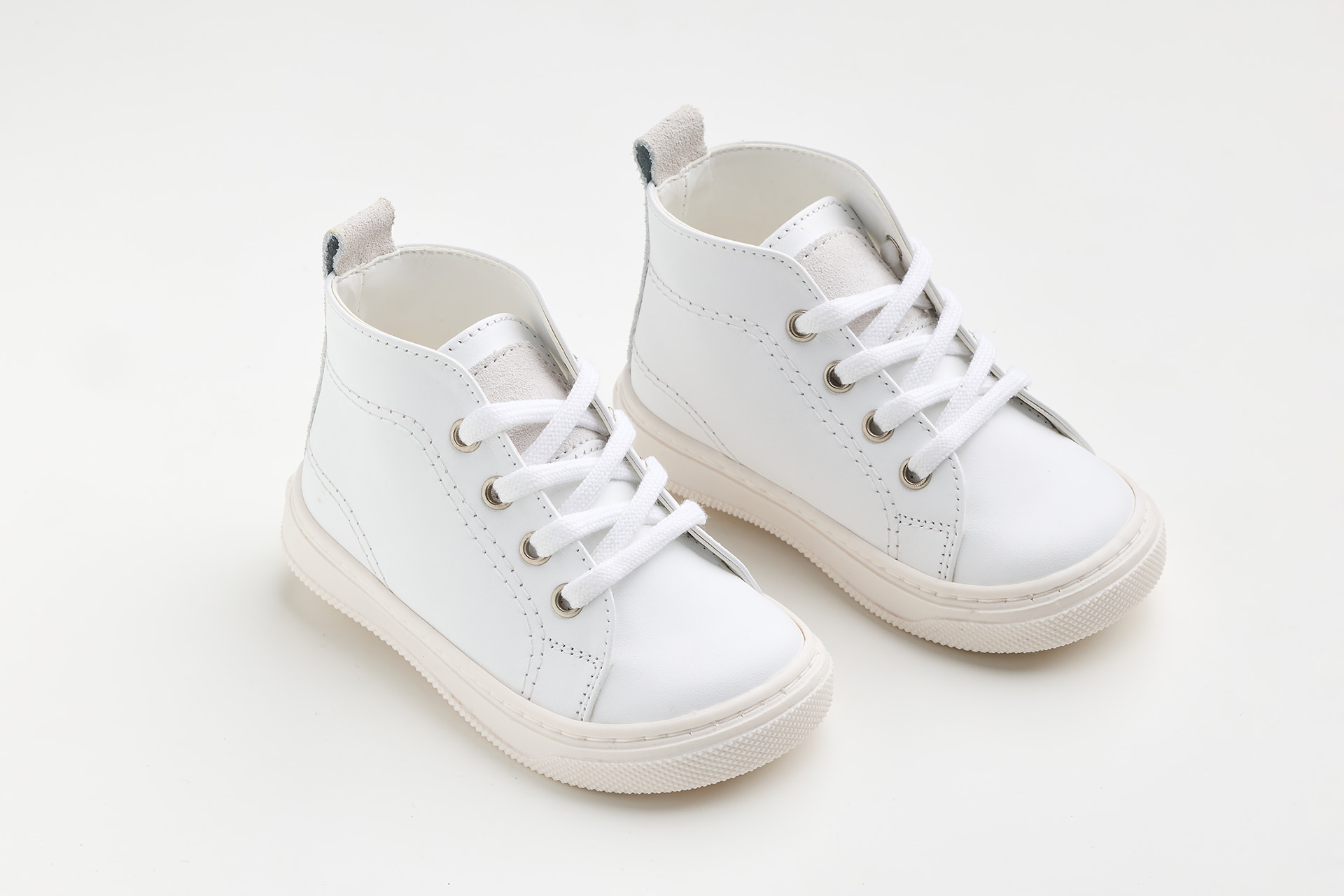 μποτάκι περπατήματος σε λευκό λείο δέρμα και λεπτομέρεια από λευκό καστόρ δέρμα
