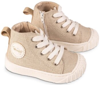 Υφασμάτινο Δετό Μποτάκι Σνίκερ με Φερμουάρ στο πλάι σε Μπεζ Χρώμα