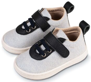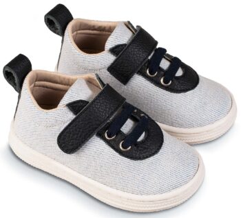 Δετό Δίχρωμο Σνίκερ απο Ύφασμα και Δέρμα σε Λευκό Μπλε Χρώμα