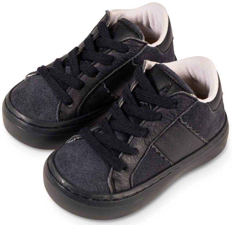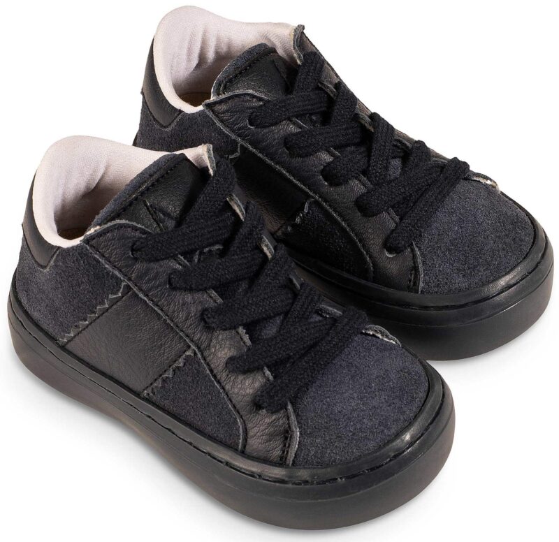 Δετό Μονόχρωμο Sneaker από Δέρμα Κρούτα και Νάπα σε Μπλε Χρώμα