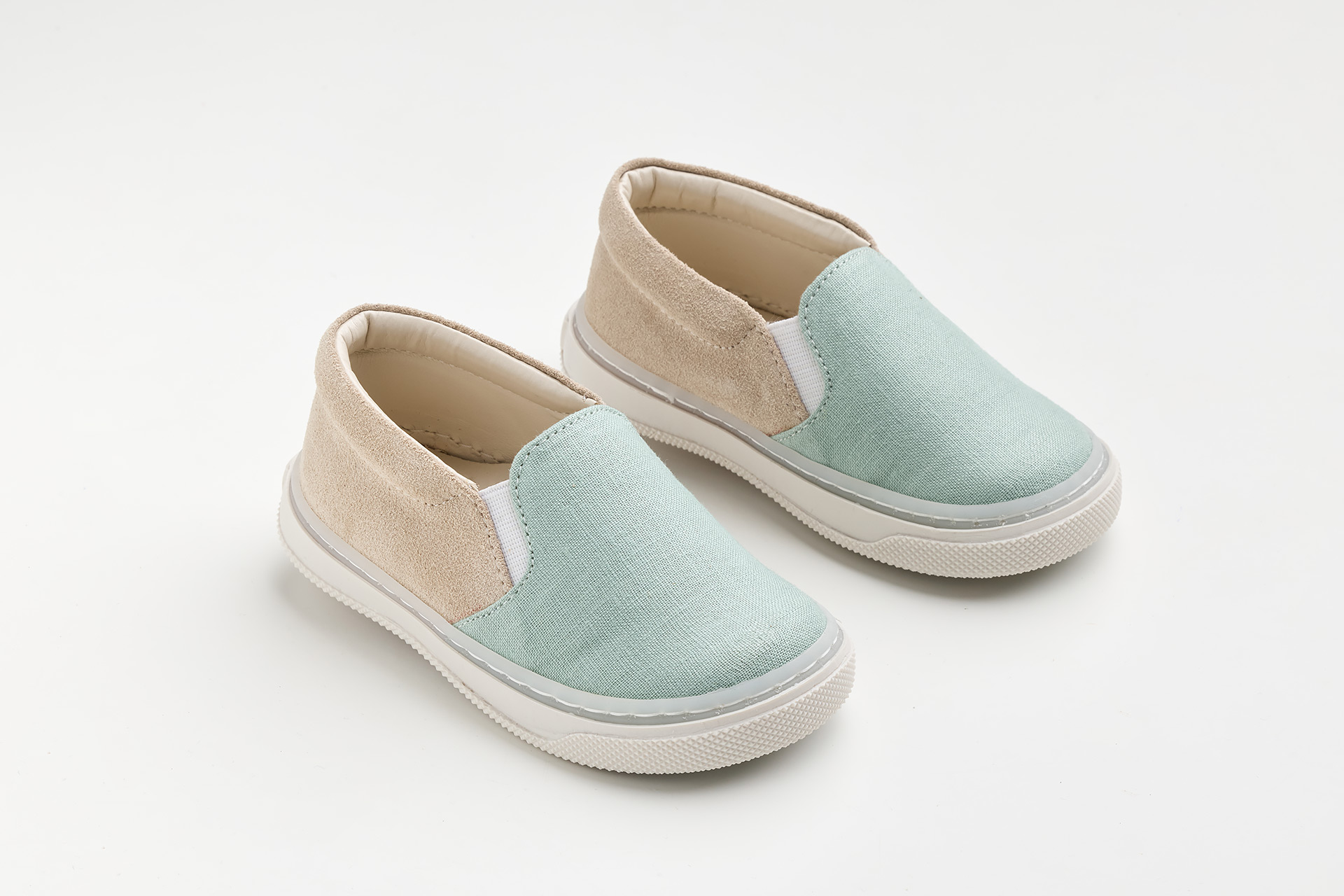 εσπαντρίγια περπατήματος, σε μέντα ύφασμα και μπεζ καστόρ δέρμα