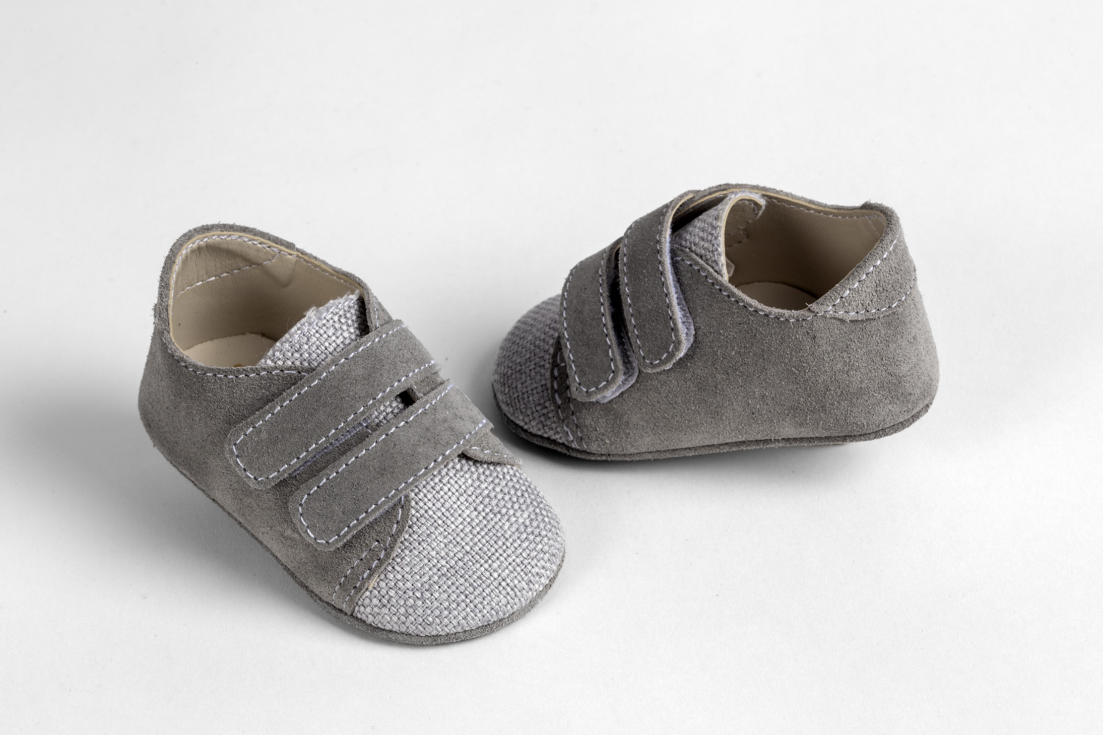 Παπουτσάκι αγκαλιάς sneaker σε γκρι καστόρ δέρμα και γκρι ύφασμα