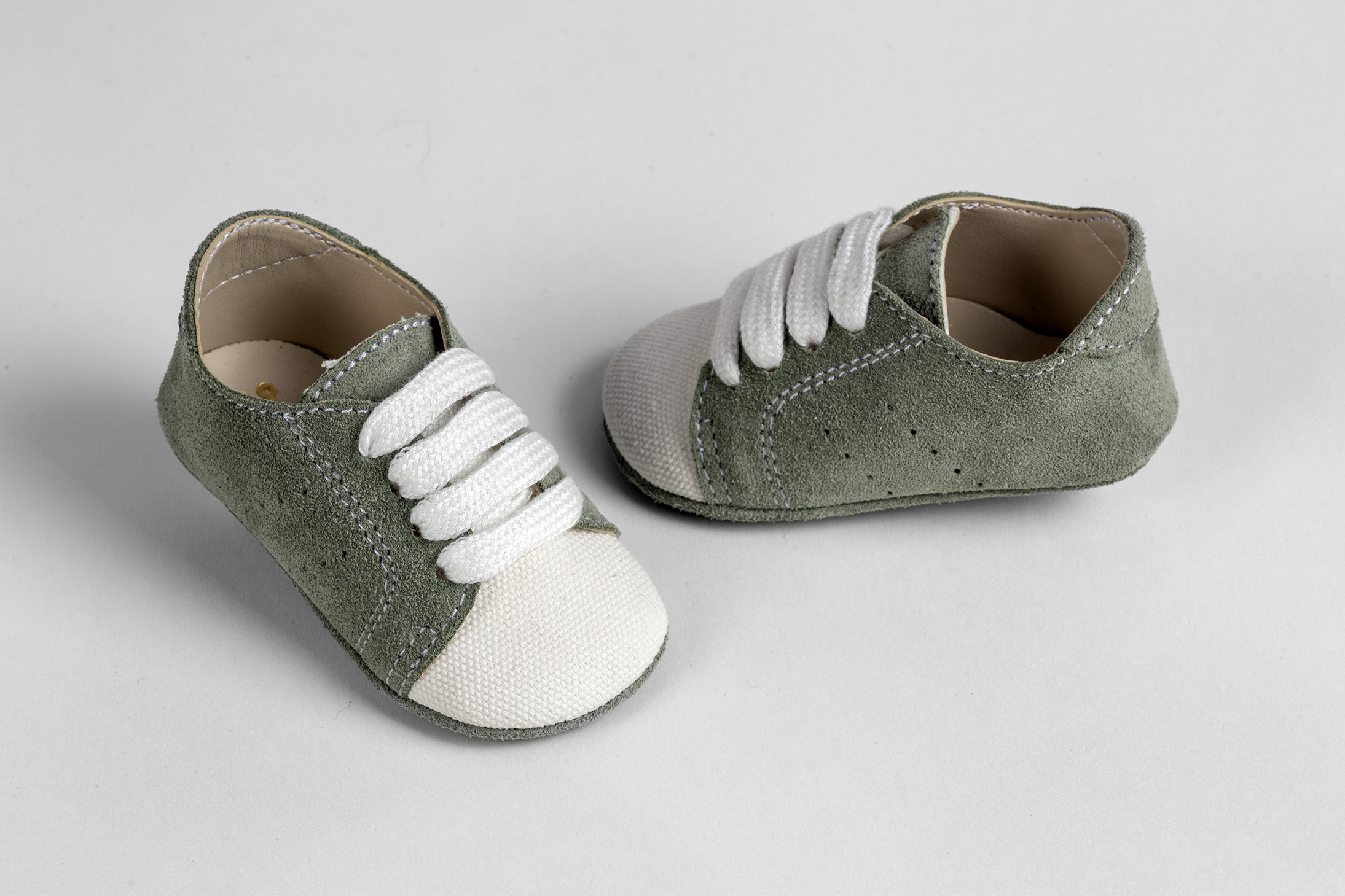 Παπουτσάκι αγκαλιάς sneaker σε λαδί καστόρ δέρμα και λευκό ύφασμα