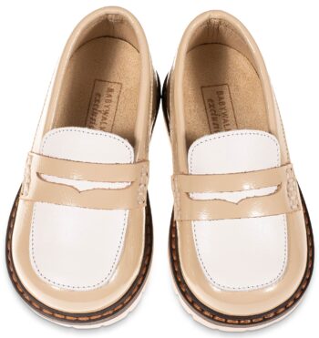 Τρίχρωμο Loafer απο Δέρμα Λουστρίνι σε Μπεζ Λευκό Χρώμα