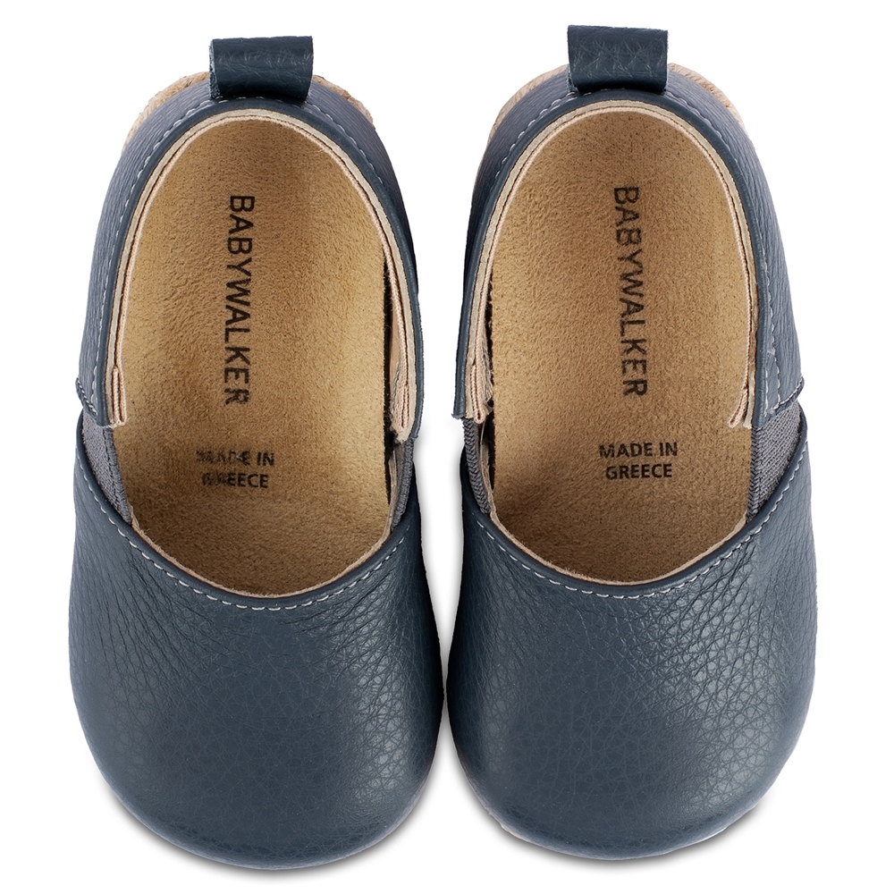 Δερμάτινη μονόχρωμη εσπαντρίγια σε μπλε χρώμα. Παπουτσάκια περπατήματος.
