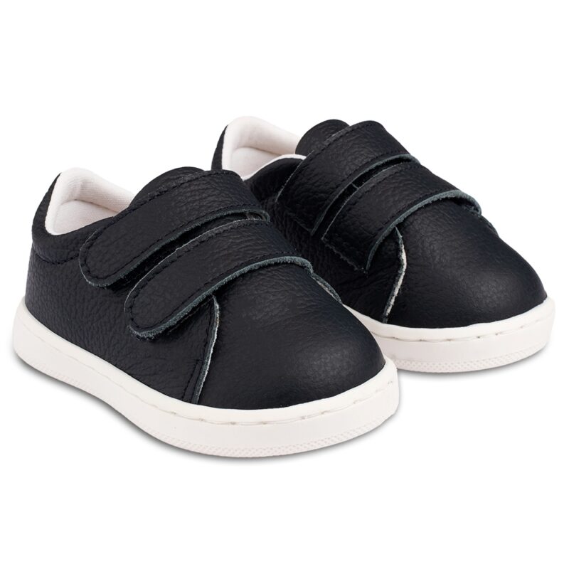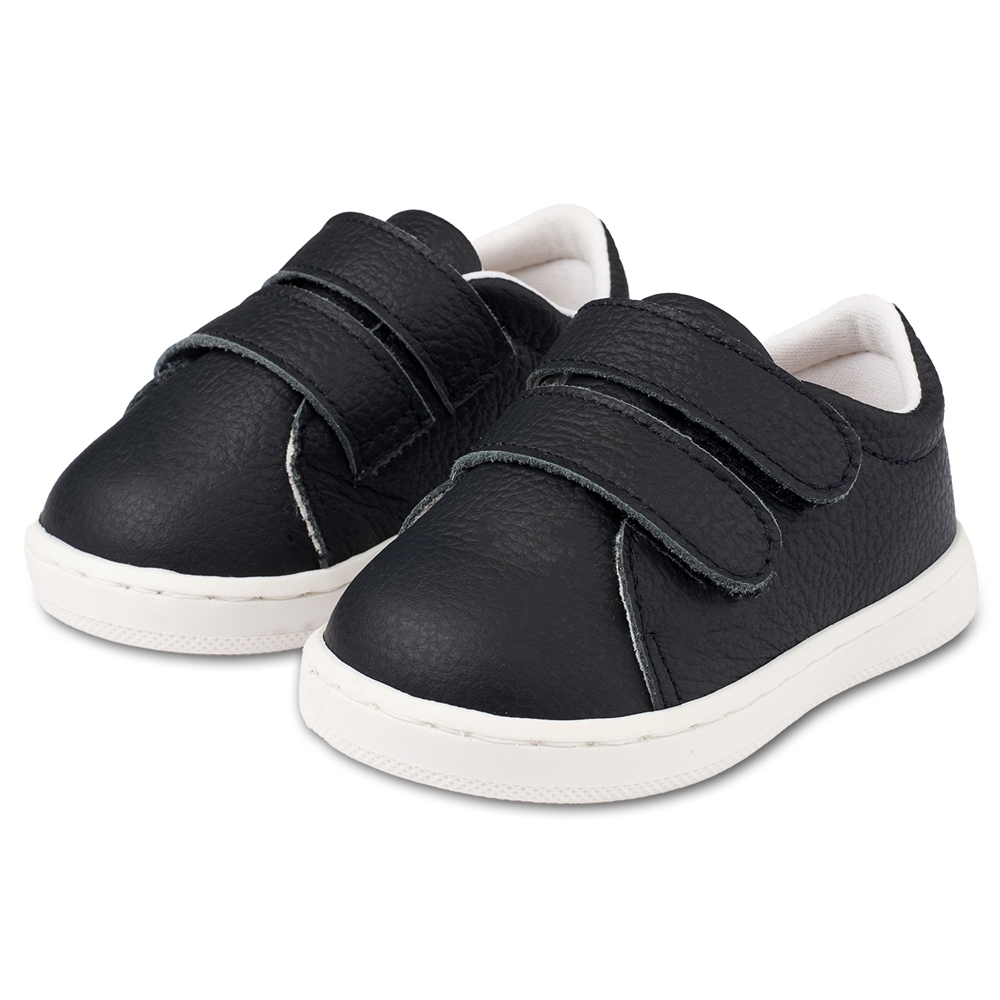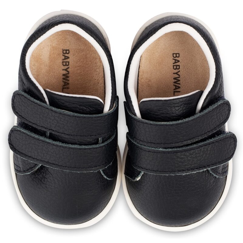 Δερμάτινο μονόχρωμο σνίκερ διπλή μπαρέτα χρατς σε μπλε χρώμα. Παπουτσάκια για τα πρώτα βήματα.
