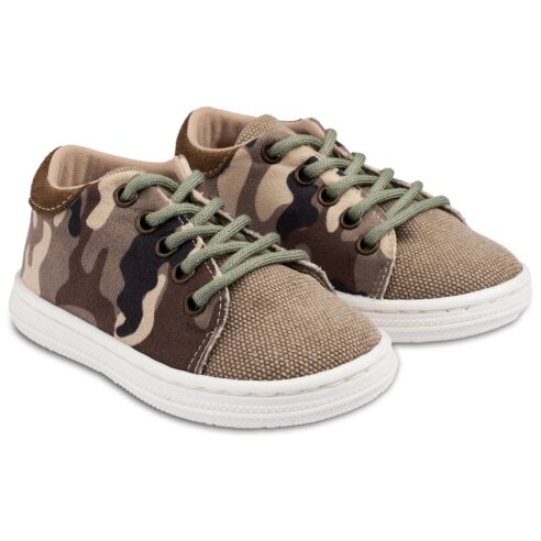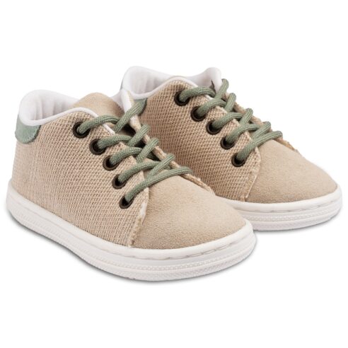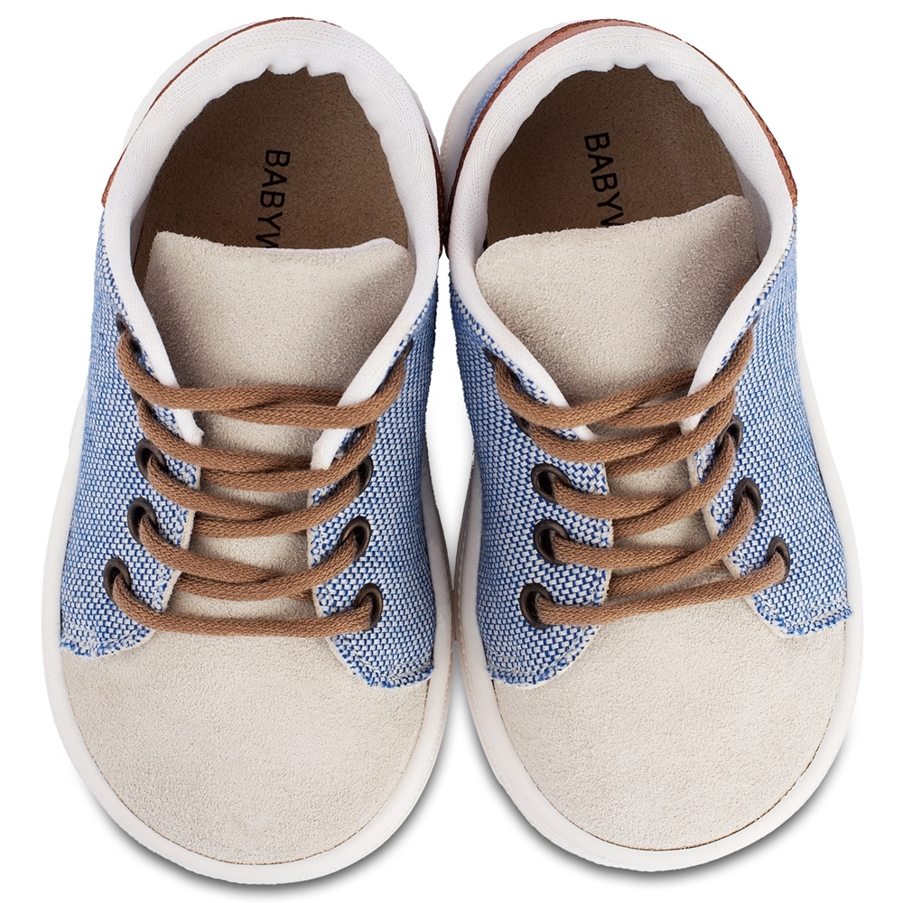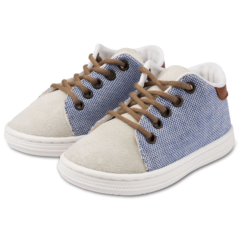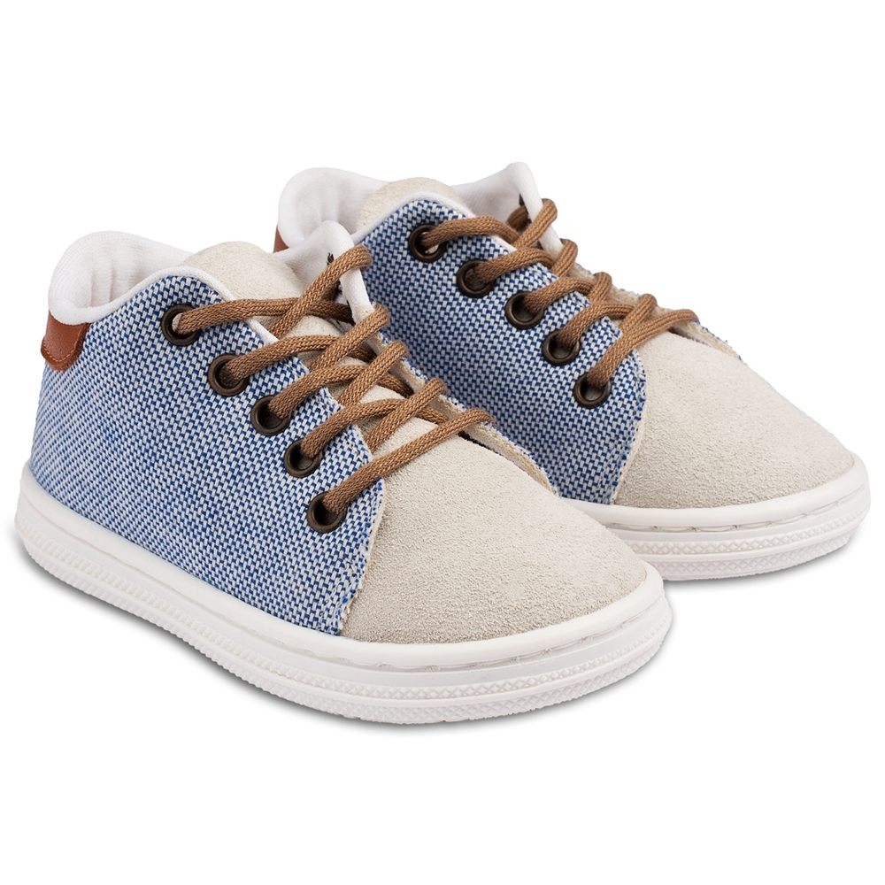 Δετό δίχρωμο σνίκερ με δέρμα και ύφασμα σε μπλε ρουά – ταμπά χρώμα. Παπουτσάκια περπατήματος.