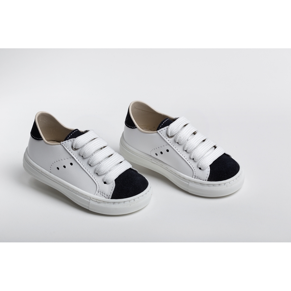 Παπούτσι περπατήματος sneaker δετό από μπλε Navy καστορ και λευκό δέρμα.