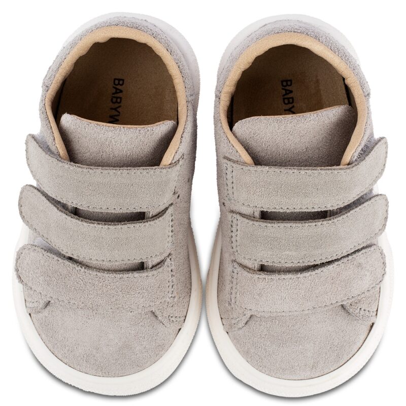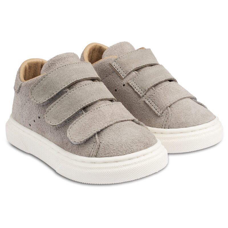 Δερμάτινο μονόχρωμο σνίκερ με τριπλή μπαρέτα χρατς, σε γκρι χρώμα. Παπουτσάκια περπατήματος.
