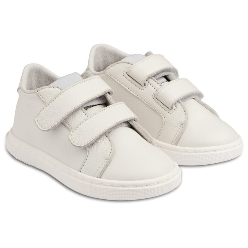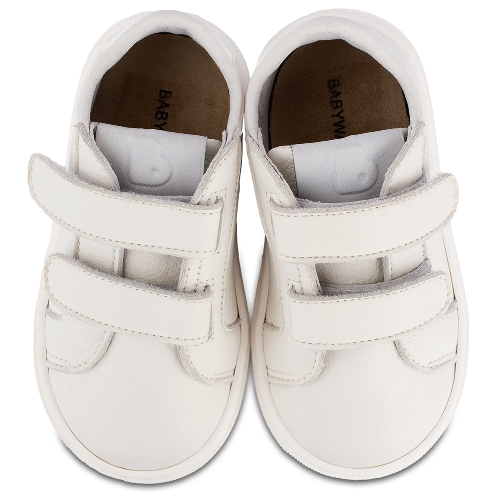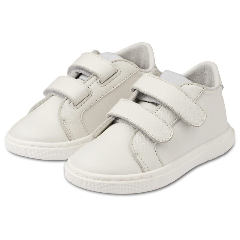 Δερμάτινο μονόχρωμο σνίκερ με διπλή μπαρέτα χρατς, σε λευκό χρώμα. Παπουτσάκια περπατήματος.