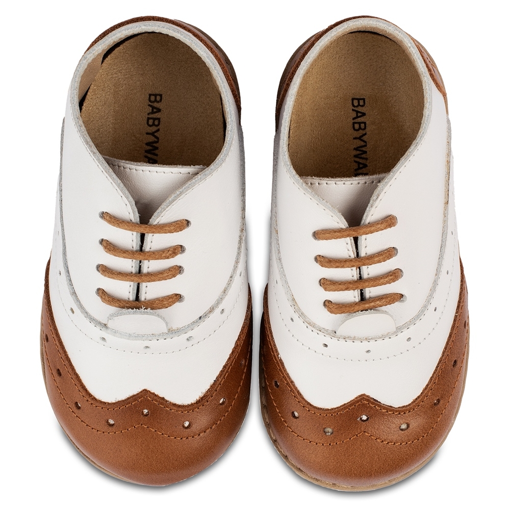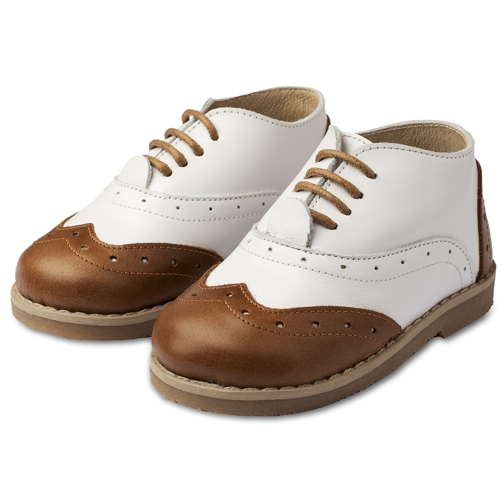 Δερμάτινο δίχρωμο δετό brogues σε λευκό ταμπά χρώμα. Παπουτσάκια περπατήματος.