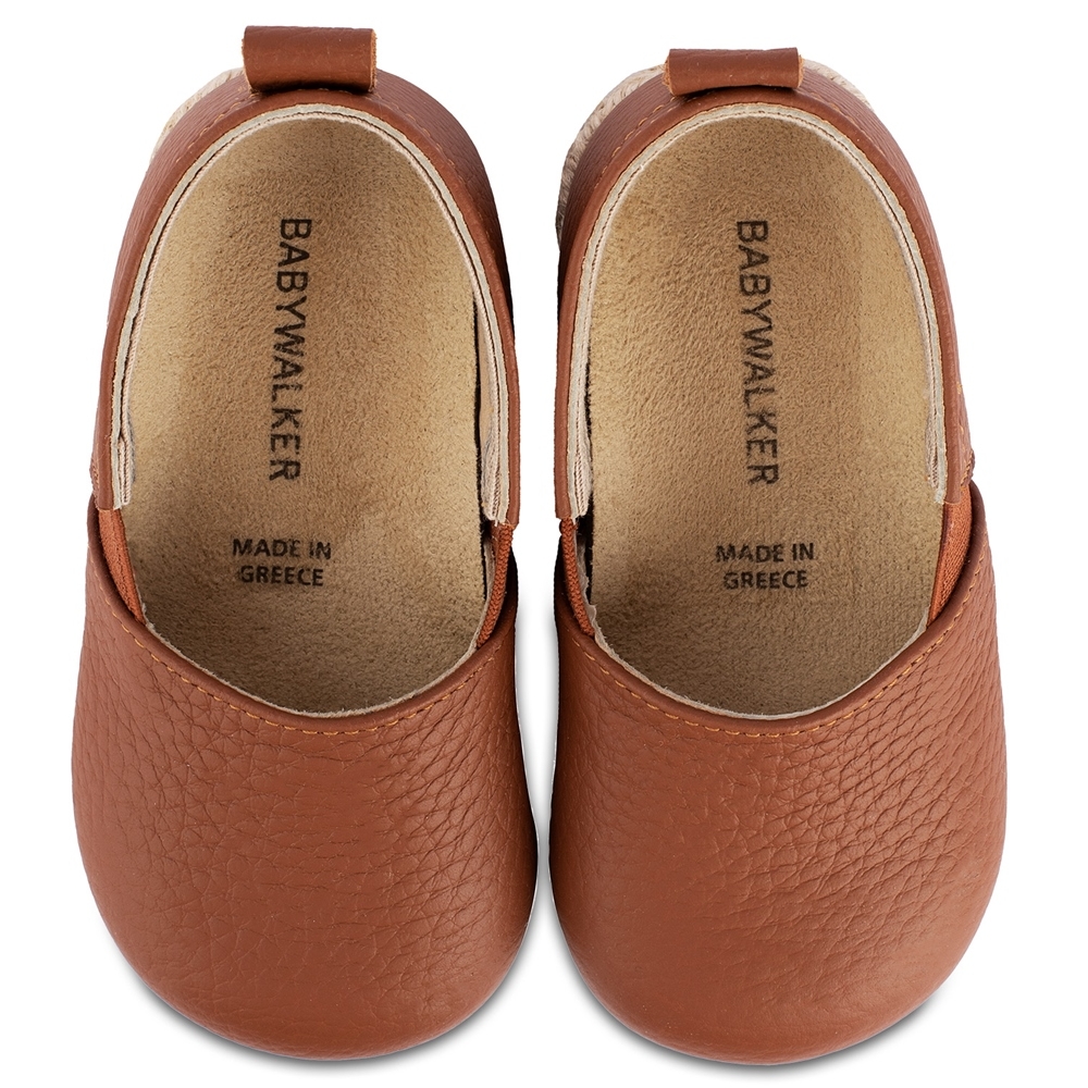 Δερμάτινη μονόχρωμη εσπαντρίγια σε ταμπά χρώμα. Παπουτσάκια περπατήματος.