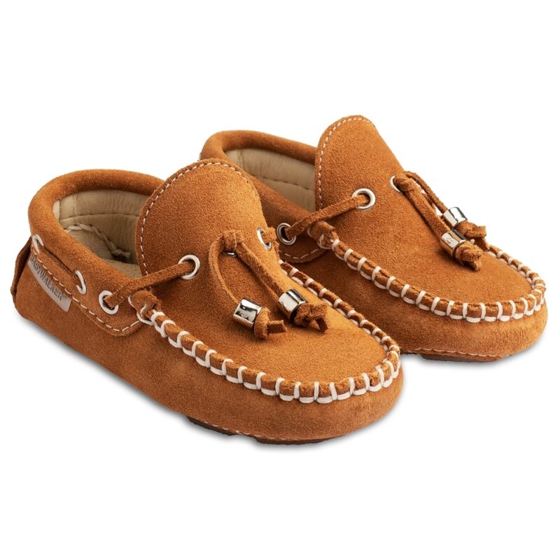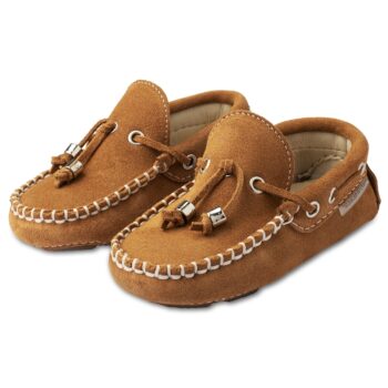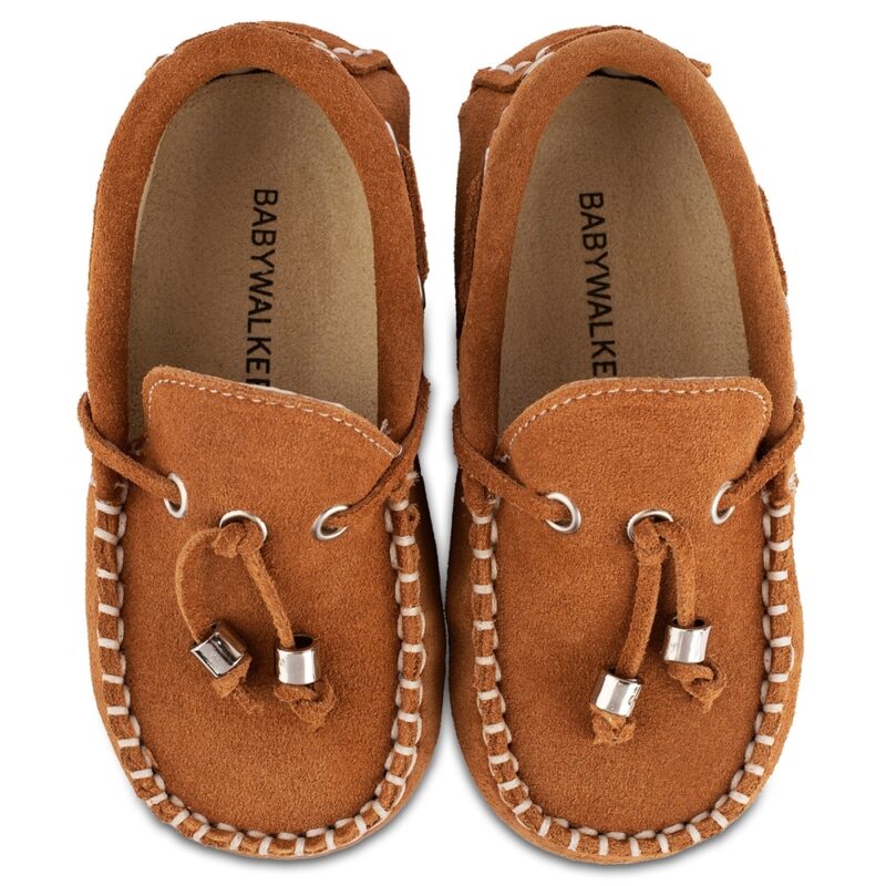 Καστόρινο δετό μοκασίνι από δέρμα suede σε ταμπά χρώμα. Παπουτσάκια περπατήματος.